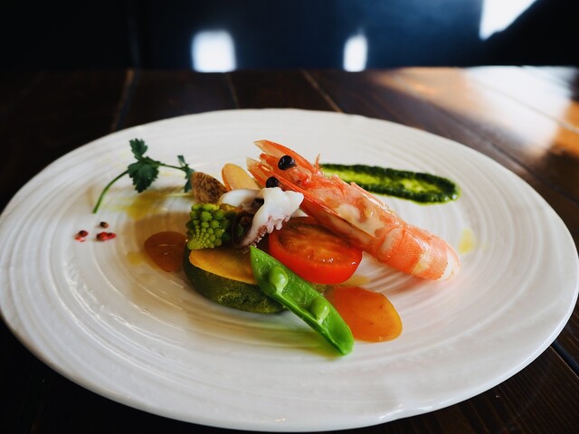 地元のお気に入りのお店で久々のランチです。 テラスでの食事がいい季節になって来ました。 愛犬と散歩の途中でランチをしました。 ワンちゃん用のお水も出してくれます。 前にも書きましたが、このお店の良いところはパスタだけではなく、魚や肉のランチメニューがあるところです。 お魚ランチ、お肉ランチは1,190円、コーヒー220円を付けると1,410円になります。今の時代、ランチは1,000円以下のお店が沢山あり、少し高く感じる方もいらっしゃると思いますが、内容が十分伴っているので私は適正価格だと思いありがたくいただいています。 白身魚のソテーアメリケーヌソースをいただきました。 海老の風味と旨味たっぷりのアメリケーヌソースがとても良いです。お魚自体に味があり、臭みはなく、皮がカリカリ身はふっくらの焼き加減も絶妙です。 プレートには、これも美味しいカポナー...続きを食べログで見る