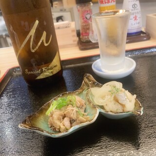 【料理・味】 浜焼き盛り合わせ 基本的には魚介類を焼いて食うというシンプルな商品なので、「味はその時の魚介類次第」とはなるでしょう。 牡蠣のカンカン蒸し 蒸されて甘味が強調され牡蠣そのものも美味しく頂けたが、 私にとって衝撃だったのは、その缶に残った蒸し汁で作ってくれた雑炊。 牡蠣の出汁が尋常じゃなく、酒が進む雑炊に仕上がっていた。 他の商品の印象が全て吹き飛ぶくらい美味しかった。 他にも食欲に負けて写真に収めるのを忘れた商品多数。 【サービス】 焼き物は「もしよければ焼きますよ~」「蒸気出てきたら声掛けてくださ~い」くらいの温度感で面倒見てくれる。 金曜だったこともあり、ドリンクがちょっと遅いタイミングはあったものの、店内の混雑具合を考えれば許容範囲。 カンカン蒸しの缶に残った汁で雑炊を作ってくれる。(\350-)これは是非食べて欲しい。 【雰囲...続きを食べログで見る