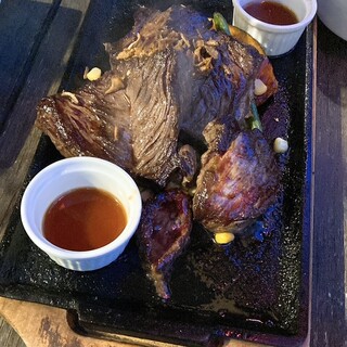 西の端交差点近くの鉄板焼きのお店「ひじてつ」! 店内は、各テーブルに鉄板が完備!小上がりの席も全席鉄板! お好み焼きももんじゃ焼きもありましたが、ここはあえてその他の鉄板メニューを注文。 ・カキの鉄板焼き ・ランプ(ラムシン) ・ほうれん草ベーコン ・キムチ 厨房で味付けして焼き上げた完成品を目の前に鉄板にアルミホイルごと提供してくれるので、提供後にすぐに食べられます。モリモリ牡蠣の鉄板焼きに、めちゃうまのほうれん草ベーコン! 圧巻なのは、宮崎県・鹿児島県から仕入れる良質な和牛の中でもA4等級・A5等級を使用した鉄板焼きは最高! 今回注文した「ラムシン」のお肉の柔らかさったらない。一緒に焼かれたニンニクチップと別添えのステーキソースとベストマッチ!めちゃうま! ドリンクは、ひじてつオリジナルの「ひじてつハイボール」!甘口でかなり飲みやすいハイボール。これ...