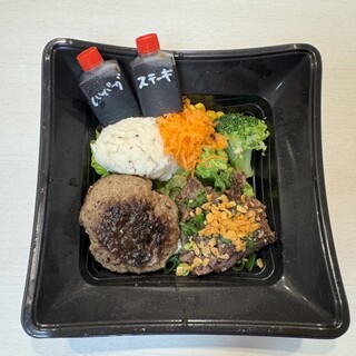 6月 平日火曜 入店 18:00 退店 20:00くらい? 乾杯の一杯目は¥380 生ビール×2。 こちらは黒ラベルの樽生です。 ジョッキにはこのお店のキャラクターが 描かれていてとっても可愛い! お通しは一品料理でもメニューにある 牛の生ハム﹙¥780﹚。 お通し料金は¥350。1人2枚ずつ。 ステーキは迷いに迷って、オススメの ¥980 特選牛ハラミステーキ 120g。 ¥680 牛タンとマッシュルームのアヒージョ ¥200 バゲット ¥680 チーズたっぷりシーザーサラダ とりあえず第一弾の注文〜とおもっていたのですが、 この後に追加注文はしませんでした。 すぐに運ばれたシーザーサラダは 温泉卵が埋まっています。 その上にストップと声をかけるまで チーズを削ってくれます♬ 大体の方はストップと言わずに、 話している...