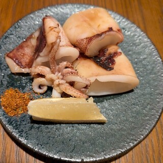 横浜駅から数分にある、飲食店ビルの6階。 エレベーターを降りると、暗めのオシャレな空間が広がっています。着席したテーブルもかなり照明が絞られて、落ち着いた雰囲気。料理はどれも美味しくいただきました。上品な盛り付けがちょうど良く、量を求めない方にオススメができると思います。 ○お通し ○韓国海苔と葱塩チョレギサラダ ●雲丹とイクラの痛風半熟卵 ◎霜降り黒毛和牛特上カルビ串 ~岩塩焼き~ ▲特選・霜降り黒毛和牛の炙り[リブロース芯] ●黒毛和牛の肉寿司と牛カルビの肉寿司 (個人的オススメ度:◎→●→○→▲→△→×) 以下詳細、興味のある方はどうぞ。 ○お通し 牛タンのカルパッチョ、とおっしゃっていたはず。お酒にばっちり合います。 ○韓国海苔と葱塩チョレギサラダ(720円) しっかり味。葱たっぷり、全体的にも量が多めです。 ●雲丹とイクラの痛風半...