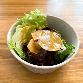 久々に14015812,葦さんでスイーツを頂いた後は、駅の反対側に移動してランチ。今回はGRILL&BAR 和栗さんを訪問しました。 駅からほど近いビルの2階にお店はあり、同じフロアにはフレンチの14009488,プチ・パピヨンさんも入っています。外観的には和栗さんの方は地味というか目立たないというか… 店内は落ち着いた照明でダイニングバーっぽいシックな雰囲気。先客1組と空いていたのでテーブル席を勧められました。感謝ですm(__)m 丁度座った席の真ん前がカウンター席で、このバックバーを背景にした席の空気感、いかにもお酒を提供する店といった風で様になってますね~♪ 訪問日はバーテンダーさんと思しき男性とお姉様のお2人で切り盛りされていましたが、お2人共とても朗らかで丁寧なサービスぶり。 さて、注文したのはランチタイム限定メニューの中からにんにく塩だれチキングリルラン...続きを食べログで見る
