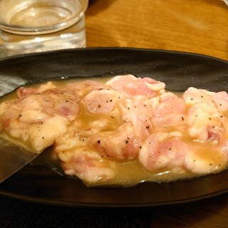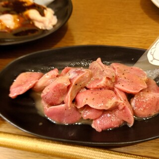 河口湖周辺でしっかり美味しい料理を食べたいなと、当日予約で訪問。 結論から言うと、とにかくタレが抜群にうまい! タレの完成度が全体の印象を一段引き上げていると思った この日はお座敷席を利用。 テーブル席もあり、店内はどこかファミレス的な安心感のある造りで、注文はすべてタッチパネルの機械オーダー式。 焼き鳥屋にありがちな呼び鈴待ちや声掛けの気遣いが不要で、テンポよく頼めるのが地味にありがたい。 焼きは炭火の網焼き。 香ばしさがしっかり立ち、皮目はパリッと、中はふっくら。 そこに絡むタレが甘すぎず、でもコクが深く、鶏の旨みをちゃんと引き立ててくる タレが主役だけど、鶏を殺さないバランス感がとても良かった。 特に印象に残ったのが、珍しい部位が食べられる事。 ハラミがおいしかったぁ。 定番だけでなく、普段あまり見かけない部位も多く、 「次はこれ」「...続きを食べログで見る