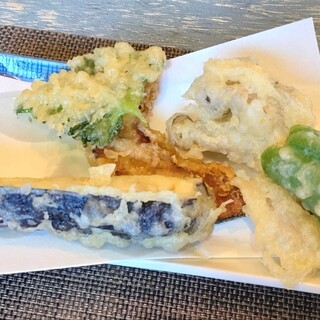 寒晒しそば(玄挽き十割)+野菜天@2,600円