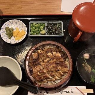 大須観音と商店街の観光で通り過ぎた商店街内の鰻屋さん。 創業100年以上の老舗、うなぎは蒸しではなく焼きと書いており、期待高まって開店前から待機。 入り口に名前記入用紙が用意されてました。 開店後にテーブル席にご案内いただきました。二階席もあるそうです。 色々食べたくて、和定食スペシャル3500円、鰻巻き単品(4個以外に2個のもありました)、瓶ビール大を注文。 まずは鰻巻きがやってきました。ふわっとした卵焼きに包まれたうなぎが美味。 その後の和定食スペシャルは、ひつまぶし以外に、お造り、天ぷら、惣菜一品、おすましが用意されていて贅沢!! 大好きな焼きうなぎは、タレも丁度いい甘味、焼いて引き締まった身の食感が美味しかったです。 ランチ時は回転早そうなので、観光時はおすすめです♪続きを食べログで見る