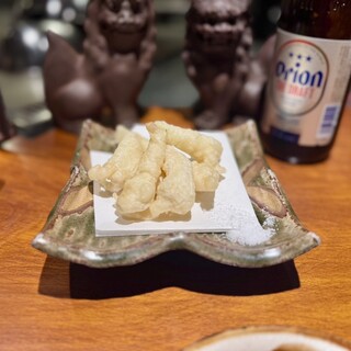 沖縄直送の食材を使った沖縄料理、 山の幸・海の幸・旬の食材を使った鉄板焼き、 朝挽き地鶏を備長炭で焼上げる串焼など パフォーマンスたっぷりで楽しませてくれます。 ——利用時—— 平日ディナー ——予約—— 予約なし 待ちなし ——利用シーン—— 友人と(二名) ——費用—— ¥2,000〜¥3,000 ——食事内容—— ▶スパム入りだしまき玉子 鉄板の上で作り上げるふわっふわなだしまき玉子♡ 口の中に入れた瞬間にほわっと甘さが広がりつつ、 スパムの強烈な塩味も感じられてうまぁ!! ▶島らっきょうの天ぷら サクッとした食感と程よい塩味で ビールが進む味わい(๑˙꒳˙๑) ——メニュー内容—— ◇スパム入りだしまき玉子 ¥850 ◇島らっきょうの天ぷら ¥890 ——接客...続きを食べログで見る
