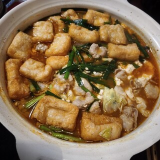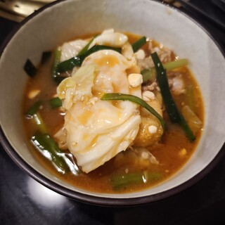 藤が丘駅から徒歩1分、〈大衆酒場ふくろうサン〉の前にあります。 駐車場はないので、近くのパーキングに。 店内はテーブル席のみ。 全席禁煙。 テーブル会計でPayPay可。 《黒毛和牛シャトーブリアンや極上カイノミなど最上級のお肉や、秘伝のみそダレを使用したホルモン、名古屋ではめったに出会うことのできないマルチョウなども人気です。 名物のもつ鍋はスープの味を塩・醤油・味噌の3種類からお選びいただける自慢の一品。 要予約でご用意するタッカンマリは本場韓国の味が楽しめると好評です。 スタッフにソムリエが在籍していることもあり、お肉に合うワインの提案もさせていただいております》 ▶️もつ鍋…味噌(¥1750)✖️2 ▶️石焼テールリゾット(¥1200) ▶️キムチ盛り合わせ(¥980) ▶️韓国やっこ(¥400) ☆ブラッディメアリー(¥480) ☆オレンジ...続きを食べログで見る