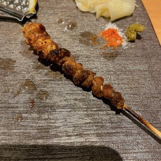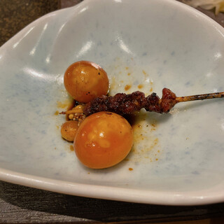 ⭐️『猩々』矢場町駅徒歩2分 @yakitori_shoujou ✅『玉ひも』1本320円 ✅『ぶりネギポン酢』 ✅『ししとう台湾ミンチ』 ✅『こころ/つくね/レバー/ささみわさび』1本170円〜 ずっと気になってた矢場町の『猩々』さん! 『玉ひも』はプチっとちょうちんにぷりぷりのひも! 口で弾ける卵黄がたまらん!!甘めのタレにちょうど良くあっててこりゃ美味い。 『ぶりネギポン酢』は本日のおすすめから。 ちょうどいい厚さのぶりにシャキシャキネギポン酢がめちゃくちゃ合うーー! 脂乗っててぶりめちゃウマ。こりゃビールによく合うヤツや、、 焼鳥もおいしかった! ささみわさびの火入れがちょうどよい! しっとりささみにピリッとわさびが最高。 レバーもぷりぷり、もちもちで最高。 お店はテーブルとカウンター席があります。 是非行ってみてねん。 ...