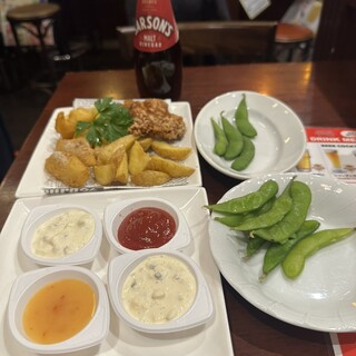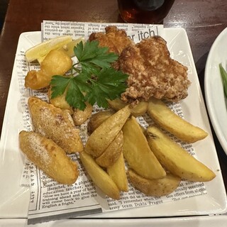 日曜日の昼、親友と行ってきました。 【ギネス(ハーフ)】 唇にふんわり、きめ細やかな泡。 ローストした麦の香りと味わいは、コーヒーにも似た感じ。 程良い苦味に、じんわり甘味が絡み合って、美味しい。 温度管理も良く、冷え過ぎていないので、ビールの味をきちんと感じられる。 【ハブエール(ハーフ)】 ハブでしか飲めない、オリジナルのクラフトビール。 琥珀色のビールは、フルーティーな香りと味が、華やかだ。 舌にじんわり甘味も広がり、とても飲みやすい。 【フィッシュ&チップス】 大きいフィッシュフライ1ピースと、くし形の皮付きポテト。 たっぷりのサラダと、レモン、タルタルソースが添えられている。 フィッシュフライは、サックリ衣に、ふっくら白身魚。 軽やかな衣と、淡泊な白身魚で、クドさは全く感じず、ペロリと食べられる。 衣の表面に、軽くスパイスがふってあるので...続きを食べログで見る
