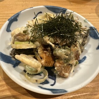 当日予約でしたが、ギリギリ時間をずらして予約取れました。 新栄駅から徒歩5分、〈CBCテレビサン〉の東側にあります。 駐車場はないので、近くのパーキングに。 2階建の店内は、カウンター・テーブル・掘りごたつ席、個室あり。 全席禁煙、2Fに喫煙室あり。 後会計でPayPay可。 注文はQRコードも可。 《繁華街の路地裏に、明かりが灯る一軒の大きな古民家。 一歩足を踏み入れると、そこは築60年の歴史が織りなす異空間》 ▶️黒豆マスカルポーネ(¥580〓税込 ▶️コーンコーンサラダ(¥620) ▶️半熟卵のベーコンエッグ(¥240) ⭐️芽キャベツと新じゃが(¥250) ▶️肝(¥220) ▶️長芋ポテトフライ(¥680) ⏩つくね(¥220) ⏩ネギマ(¥220) ⏩しそ豚巻き(¥250) ⏩キッチンフリーキー(¥250) ☆梅干しサワー(...続きを食べログで見る