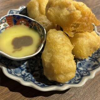 大須で予約困難店として知られる「池田屋」さんの2号店が先月オープン . 気になっていたお店は 池田屋はなれさん お友達も行きたいと行ってたので予約を取りました . 店内は1階がカウンター 2階はテーブル席 2階へ案内されました . 予約は取れましたが時間は20時すぎ . それでも入れただけラッキーかも今のところまだ穴場な印象です。 . 今回いただいたのはこちら ・お通しはチーズそぼろ(440円) ・ブリの薬味海苔巻き(660円) ・イカの一夜干し(1200円) ・鶏ぶつ唐揚げ(660円) ・里芋唐揚げ(495円) ・和牛ホルモン餃子(550円) ・一文字のぐるぐる(330円) ・とろたく巻き(1巻440円) . どれも美味しくて満足度高め 里芋の唐揚げにはトリュフガーリックバター を付けていただくの これめっちゃハマりました 美味しす...