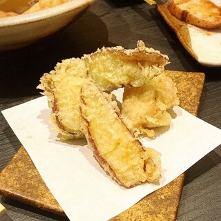 週末の夜、一人で入ってみた。 お若い男女三名が勤務していらっしゃった。 カウンターテーブル席に着いた。 客席には鉄板が備わっていない。 飲物は「サッポロラガー赤星(中瓶)」(715円)をいただいた。 「だし巻き玉子 鬼おろし添え」(605円)が手早く調理され提供された。醤油注しも出されたが、出汁がよく効いていたので結局最後まで醤油は欲しくならなかった。鬼おろしは、大根おろしの通常より粗くおろしたもの。柔らかい食感のだし巻き玉子によいアクセントを付けてくれていた。 「お好み焼き 豚玉」(968円)+「ネギたっぷり」(275円)を焼いていただいた。調理の様子は客席からはほとんど覗えなかったが、半球状の覆いを用いて蒸すように焼くことだけ察知できた。調理時間はじっくりと20分くらいかけているようだった。 鉄皿に載せて提供された。 オプションの「ネギたっ...