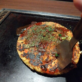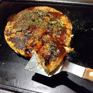 「どんぐり」は、京都府に7店舗あるお好み焼チェーン店。 こちら京都駅前店を夜、一人で訪ねた。その日の宿のすぐそばのお店だった。 店頭に、お品書きが値段も明記して掲出されていた。これは良いことだと思う。 席は2日前にWEBで予約していた。鉄板付きの長テーブル席に通された。 店内は賑やか。外国人客多数。 ・「瓶ビール(中)」(688円)×2 サントリーのザ・プレミアムモルツの中瓶だった。地元京都産とのこと。2本いただいた。この銘柄は、一口目は風味に華やかさがあっていいのだが、途中から薬くささや甘ったるさから逃れたい気持ちになってしまうのが惜しい。ワインにしようかとも思ったが、割高だったのでこれで我慢した。 ・「エビガーリックアンチョビ焼」(688円) お好み焼が出来上がるまでの間にいただこうと思って注文したのがこれだったが、両者が同時に提供されてしまった。...続きを食べログで見る