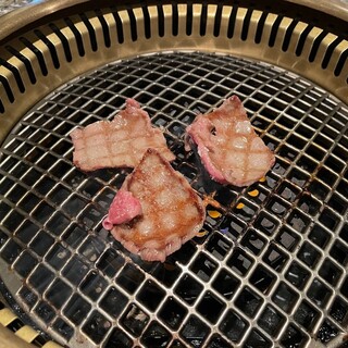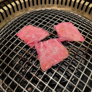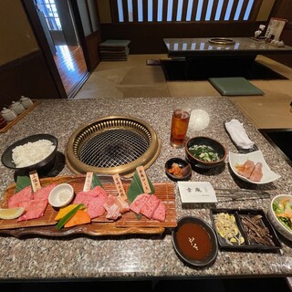 土曜日の午後1時半過ぎ ランチに行こうとした店の駐車場が満車で入れず、彷徨ったあげくコチラの店に飛び込んだ 入店時、「予約されてますか」 と聞かれたので、断られるかと思ったが すぐに4人掛のテーブル席に案内して頂いた なお会計時に教えて頂いたが 土日のランチはかなり混むみたいで 予約はした方が良いとのことだった 靴を脱いで入る田舎風の大きな店 全て4人掛の掘りごたつ形式のテーブル席で 訪問時は家族連れなど結構な人数の客が入っており賑わっていた この店の肉の味もよく分からなかったので ランチメニューの中から一番安い ハラミ焼肉セット(1510円)を注文 7~8分ほどで、 ・ごはん ・キムチ(小皿) ・スープ ・小鉢一皿(牛肉しぐれ煮) ・ハラミ6切れ (人参、カボチャ、ピーマンが一切れずつ) が提供された 味の感想は ・ご...続きを食べログで見る