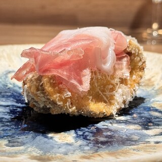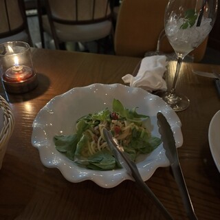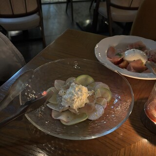 ◆出色の一皿 アオリイカのクリームソース・スパゲッティ スペシャリテと云うリゾットの アンチョビ風味のリゾットのアルデンテ度合いに 帆立貝のフレッシュさ、蕗の薹の苦みのバランスも素晴らしかったが、 より印象的だったのがパスタの一皿。 アオリイカのクリームソース・スパゲッティは アオリイカが蒸らしたようなもっちりな口当たりで噛み締めるほどに甘く、 クリームソースには温かまったりの中に魚醤の発酵のニュアンスの奥行きが有って スパゲッティのさっぱりつるんとした麺と良く絡み合っている。 クリームソースのパスタはともすると強い旨みに塗りつぶされてしまいがちだが、 このパスタでは花わさびの茎感も伴った仄かな酸味が後口を締めて 全体に透明感をもたらしている。 この一皿が象徴するように、 一皿一皿、そしてコー...続きを食べログで見る