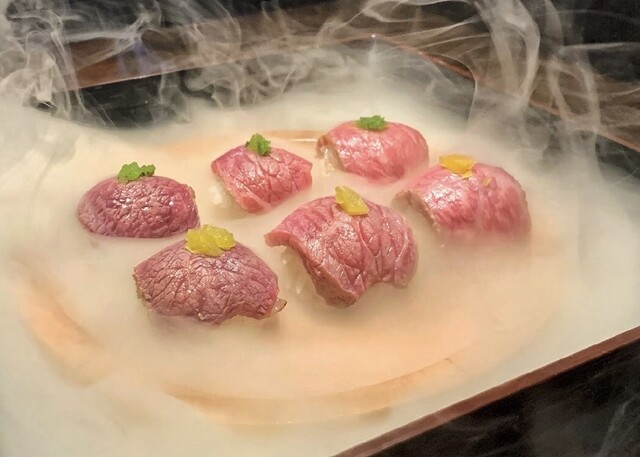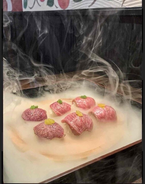 【氷と燻製牛肉手毬寿司えんとつ】 燻製牛肉寿司 泡のかき氷 和モダンな店内の カキ氷でも有名な ずっと行きたかった素敵なお店で はじめて行きましたが この価格でいいんですか?ってなる 全てのお料理が間違いない美味しさでした☺️❤️ 特に肉寿司は燻製してあるので 蓋をあけると、モクモクの煙で ワクワクしてテンションあがりました❤️ ランチコース (1,980円) •季節の前菜 1品 •燻製肉寿司 or 燻製肉手毬寿司 6貫 •自家製ジェラート (+ ¥550かき氷Sサイズ or 焼芋ブリュレハーフサイズに変更可能) プチコース (3,300円) •季節の前菜 2品 •日替わりメイン •燻製肉寿司 or 燻製肉手毬寿司 6貫 •自家製ジェラート (+ ¥550 かき氷Sサイズ or 焼芋ブリュレハーフサイズに変更可能...続きを食べログで見る