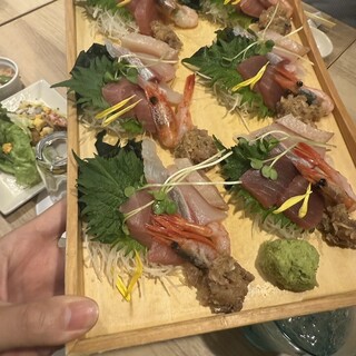 正直投稿するか迷うくらい、美味しい×新鮮×日本酒酒類豊富=独り占めしたいお店! このお店に出会ってから、やっぱり私は食べログの数字だけでは信じないぞ!!って宣言するようになったくらい。笑 割烹の美味しさを小皿で少しづつ頂くようなこのお店。 中でも魚介が最高に新鮮。 今回はお昼に一人飲み ︎︎︎︎︎︎☑︎お造り盛り合わせ7種(一人前 1,600円) 7種盛りを頂いたら、1種類多く盛ってくださってて大将~ってなった!♡ 穴子の炙りは大のお気に入り。あの食感と新鮮さ! 皆にも食べてほしすぎる。 ︎︎︎︎︎︎☑︎和牛炙り肉寿司 ウニのせ(500円) お肉もね、最高。 肉寿司好きの私にはたんまらん美味しさ。 やわらかーーーーくて上に乗ったウニがこれまた新鮮で甘いの! 写真みてくれたらわかると思うけど、ウニ、乗りすぎてない?笑 ちなみに乗ってない...