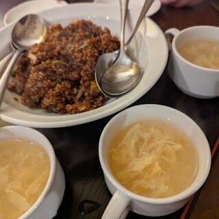 一条寺駅近くに 新たに洋食屋さんが出来たので 伺ってみる 明るい店内 素敵な接客 そんなお店でした いただいたのは 手ごねハンバーグランチ ひき肉とたまねぎのビブロスカレーランチ 野菜とスープ そしてメインが登場 ハンバーグは少しレア加減なハンバーグ カレーは本格的な味わい 辛さも少しありの欧風カレーかな 味見させてもらったけど ハンバーグよりカレーの方が好きな味でした これは嫁も同じ意見でした ここのカレー シンプルですが美味しい‼ 続きを食べログで見る