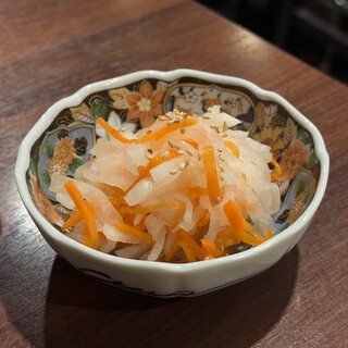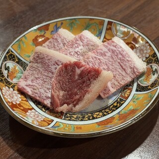 注文したメニュー: 爆笑タン 2178円 爆笑ハラミ 2035円 ハラミのローストビーフ 1100円 焼きすき 1848円 たまごかけごはん 748円 キムチ盛り合わせ 968円 ナムル盛り合わせ 968円 肉寿司2貫 968円 ユッケジャンラーメン 968円 大阪メトロ 長堀橋駅から徒歩5分のとこ。 ヨーロッパ通りにある、元プロ野球選手であるオーナー大西 宏明氏が手がける焼肉店。 店内は1階はカウンター席とテーブル席があり、あたたかみのあるライトが照らされた落ち着いたおしゃれな空間。 カウンター席でしたが、かなり広々として、目の前には肉が並べられたショーケースがありました。 地下は掘りごたつ席で、大人数でも使いやすそう。 地下への階段の壁面から地下の座席の壁にかけてたくさんのサインが書かれていました。 他にもオーナーさんが携わっていた球団のユニ...続きを食べログで見る