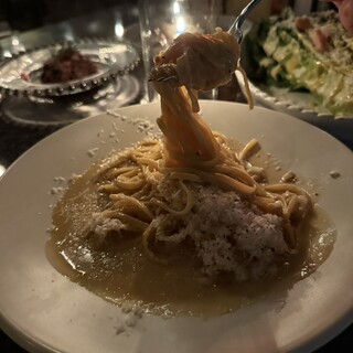 2019年2月20日 水曜日 予約しての訪問は19時半 妻と二人で行ってきました。 かなり久しぶりの、テンパールさん。 まずは、選べる前菜5種盛りから。どの前菜も、ハズレ無しの優れもの❤ 大根のペペロンチーノ。ヤバイね❤これは!! タコのマリネも、セロリが美味しい。 まずは、カールスバーグ生ビール乾杯!!からの、赤ワインボトルで。 ここで一番好きな、毎回注文するのが、イタリアン鉄板餃子。 ボルチーニ茸&トリュフ入りの餃子。具材の肉が大きめにカットされてて食べ応えもあります。 仕上げの、チーズもワインか進みます。 これ、LOVE❤(//∇//) かなり、おすすめです。 そして、始めて食べた、ウニと白子のクリームグラタン。 おすすめは、バケット付とのことで、バケットも注文。 これは美味しいチーズソース???な、トロトログラタン。...続きを食べログで見る