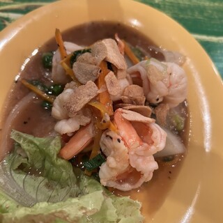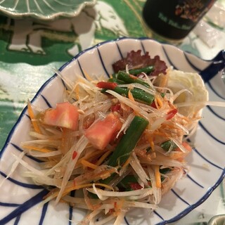 以前夜に行ってとっても良い店だったので、ちょっとアジアンなお口になったこの日再訪してきました。 店先には大きな顔の像が並んでいてユーモアあって目立つお店です。 店内もアジアンな雰囲気が満載。 店員さんもタイの方なのでより雰囲気あります。 ランチはタイの料理が一通り揃ってます。 ガパオライス、カオマンガイ、パッタイ、グリーンカレー、パネーンカレー、マッサマンカレー、 パッポンカレーなどがありますよ。 私はお米の麺がプニプにして美味しいタイの焼きそばであるパッタイにしました。 ◆タイ式焼きそばパッタイランチ 価格 900円 スープ、サラダ、パッタイが盆に乗ってやって来た。 パッタイの具材は目玉焼き、厚揚げ、えのき、干し海老、むき海老、クラッシュナッツなど。 スープは鳥ガラの優しい味わいで角切り野菜やキノコがゴロゴロで美味い^^ パッタイは半透明の綺麗な...