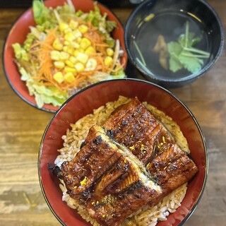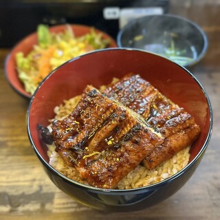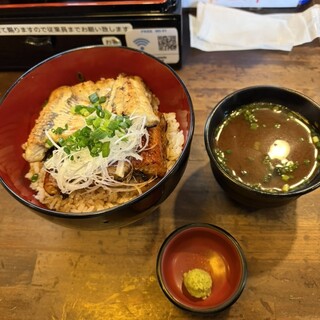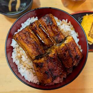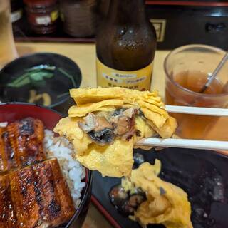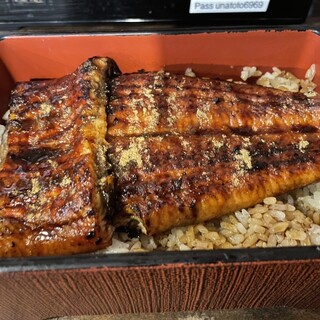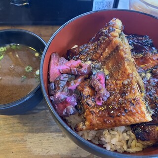 圧巻——この言葉以外に、このビジュアルを表現するにふさわしい語彙が見つかりません。ルクア大阪の中に店を構える「うなぎ 串料理 いづも」で供される鰻玉丼。その一杯は、まるで豪奢な宝石箱のように、見た瞬間から全身の感覚を鷲掴みにされる衝撃と高揚感に包まれます。 まず何よりも視覚に飛び込んでくるのは、丼ぶりからはみ出さんばかりに盛りつけられた大ぶりの鰻。炭火の香ばしさを纏い、テリッと光るタレの艶やかさが食欲を猛烈に刺激してきます。箸を入れるその一瞬でさえ、もったいないと感じてしまうほどの存在感。そこに、ふわりと鎮座する出汁巻き玉子の淡黄色が、まるで雲のように柔らかく、濃厚な世界に一筋の光を添えています。そして、その下にぎっしり詰まったご飯には、贅沢にタレが染み渡り、米粒一つひとつがまるで宝石のように輝いているのです。 この鰻、ただのボリューム勝負ではありません。肉厚でありながら繊維は...続きを食べログで見る