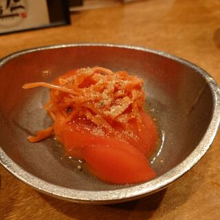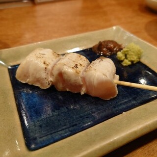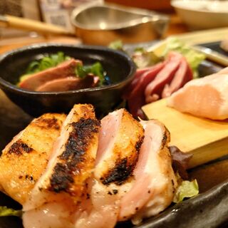 グルメな方からおすすめされて初訪問 ミナミのド真ん中✨雑居ビル1階奥にお店があり隠れ家感満点 . まさに『隠れ家和バル』 . 店内は手前にカウンター・奥に座敷と意外と広くアットホームな空間になってます☺️ . 名物は『鶏だしおでん』と『大山地鶏の焼鳥』 . 各地の珍しい地酒や焼酎も揃っており居酒屋メニューもあるので2軒目使いにも良さそうな感じです☝️ . この日は座敷に案内され気になるメニューをオーダー . ■名物ガリトマトスライス ■炭焼き鰹のたたき〜ポン酢のジュレで ■お造り三種盛り ・肝のさっと炙り ・ささみのお造り ・炭火焼もものたたき ■地鶏つくねハンバーグ ・蘭王卵トッピング +100円 ■炭火焼きももステーキ ■焼鳥 ・ねぎま ・もも ・はつ ・レアささみ ・ぼんじり ・ずり ・かわ ・やげん軟骨 ■地鶏出汁おでん...続きを食べログで見る