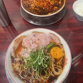 フラン軒です。 平日のランチタイムです。時間も12時ちょい過ぎです。相変わらず猛暑続きますが、船場心斎橋商店街も人でいっぱいです。店頭はもちろん行列です。券売機で食券買って最後尾に並びます。約10分程で店内に。今回は?限定。冷やしドリトスタコスです。かなりぶっ飛んだまぜそばです。皿の上には。大量のメキシカンタコス味のドリトス、ドリトスの袋の中に、麺と具材です。お皿の箸にライムが添えられて。先ずは袋から出して、一気に混ぜます。ドリトスが落ちないように慎重に、麺は冷たい平打ち麺、酸味のきいたエスニックな冷たいタレが良く絡んで美味しいです。レタスの食感も良く、パクチーがガッツリきいてます。粉チーズでまろやかに、トマトの酸味が冷やしには良く合いますね。途中でライム絞ってエスニックに爽やかに。タコスミートも良く絡めて、ピリッと美味しいです。ドリトスは砕いて麺と一緒に美味しいです。大量のドリトス...続きを食べログで見る