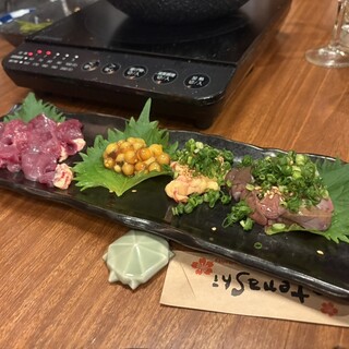 水曜20:30 先客6名ほど。 以前から気になってたこちらに伺いました。 JR難波駅からすぐのところの 外から見るだけでビル全体のオシャレ感が伝わる場所。 食べログからの予約見ると意外と予約は取れるので それも嬉しいね。 予約困難店て僕苦手なので。。笑 三階、ドアを開けるとおしゃれで開放的な空間。 全面ガラス張り! うわぁもう店選びだけで勝ち確定のお店やん。 店員さんは2名。 お客さんも流石にみんなオシャレ! メニュー名がすごく良くて、 何かと頼みたくなる料理が多いです! で、日本酒はショーケース冷蔵庫から 自分の気になるものを取り出して店員さんに渡すっていう 実に斬新なシステムです。笑 ◾️食べたん 河内鴨ロースタタキ自家製醤油麹で 1250 カンパチのお造りごま味噌だれで 990 水茄子のもろ味噌バーニャカウダ 550 みり...続きを食べログで見る