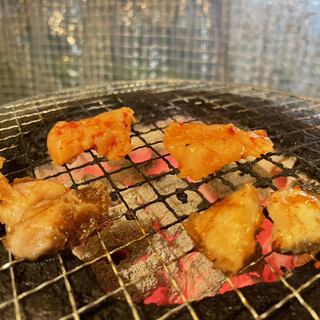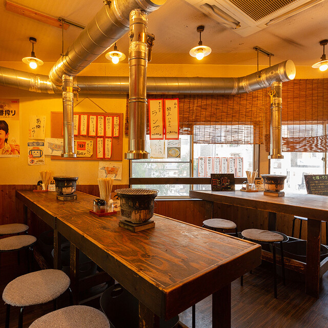 以前と店名が変わっていることに気付いて階段を上がった。 ホルモンズ とても分かりやすい店名だ。 店内レイアウトは以前の店と全く同じだった。 ただ、以前はピンク一色だったのがシックな黒に変更。 これだけでもイメージが全然違う。 ごはんとスープはセルフサーブ方式、 従って自分の空腹感に合わせて調整できる。 食べ残しなど恥ずべき行為はしてはならない。 850円のホルモン定食から1,200円の全部盛り定食まで 定食は5種、プラス750円の欧風カレー。 肉の量やトッピングで追加可能。 私がオーダーしたのはこちら、 ハラミ定食:950円 まずキムチとゴマ竹輪がサーブ、 その後セルフでご飯とスープを取りに行く。 その直後に鮮やかな深紅色のハラミが載った皿が登場、 うひょぉ~('ω')ノ 美味そうだ。 ガスロースターで自分好みに仕上げる。 ...続きを食べログで見る