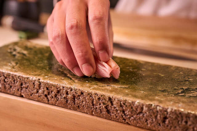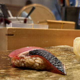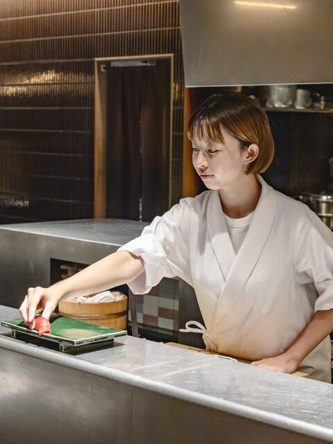 賑やかな繁華街であるなんば座裏の一角にひっそりと佇むカジュアルな和食レストランです。 旬を先取りした逸品はもちろん、こだわりの赤酢のシャリで召し上がっていただく本格江戸前鮨の数々。 職人が調理している様子をライブ感たっぷりでみられるカウンター席が人気です。 提供する料理やサービスは上質ですが、かしこまらないフランクな雰囲気の店内です。 お料理や食べる事が好きな方や、コミュニケーションをとることを楽しめる方に来ていただけたらと思っています。