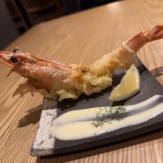 天満駅近くの海鮮料理と天ぷらをいただけるオシャレな居酒屋さん。店内は落ち着いた雰囲気でカウンター席とテーブル席。デートや少人数の会までと多くの場面で利用可でした。 入り口目の前のカウンター席に座ったのもあり、出入りがあるとヒヤッとしましたがお酒も入っていたので良い酔い覚ましに笑 日本酒は限定酒や店主さんが厳選した銘柄が用意されており、充実したラインナップでした。 タコの胡麻ポン酢はタコの水水さにポン酢がピッタリ。それだとサラッと感じるところを胡麻とネギがマイルドにしてくれてバランス良きでした。 海老の天ぷらは頭から尻尾まで全部食べれるの嬉しい。出てきた時のビジュアルも含めて毎回頼んでしまいます笑 スタッフさんも親しみがあって居心地良きでした。 ----- 【営業時間】 ・17:30〜00:00(月〜金、祝日、祝前後) ・15:00〜00:00(土〜...続きを食べログで見る