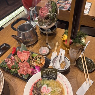 美味しいお肉が食べたくて お友達と女子会で行って来ました! まずは、 おろしレッドグレープフルーツサワーで乾杯! キムチ盛り 食べやすい辛さでおいしい 絶対ナムル 韓国のりと4種のナムル ここからサラダ ゴットタン スタッフさんが、丁寧に焼いてくれます。 1頭から1人前しか取れないタン元。 早い者勝ち! 伝説盛り ぶ厚いタン 分厚いハラミ 分厚いひれ スタッフさんが丁寧に焼いてくれて、盛り付けて持ってきてくれます。 ここから盛りニンニクだれ その日の鮮度の良い赤、白ホルモンの部位が出てきます。 ニンニクたっぷり蒸し焼きにして頂きます。 乄は、名物肉飯 焼肉のタレが、しっかり絡んだご飯とお肉。どんどん食べれます。美味しい。 デザート 生チョコアイス 抹茶アイス アイスグラタン 小さめデザートなので、食...続きを食べログで見る