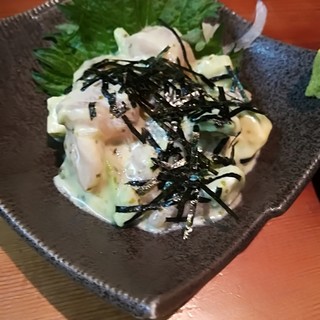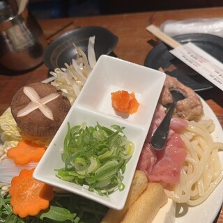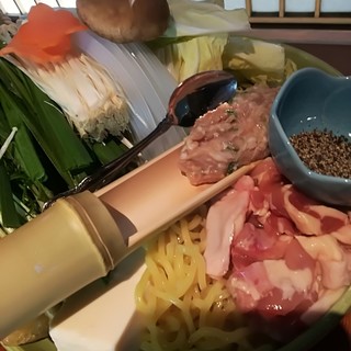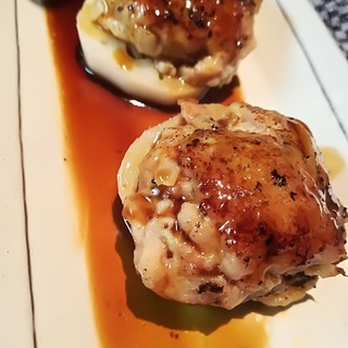 結構隠れ家的なとこにお店ありましたが、中入ってみるとめちゃめちゃオシャレ✨️ そんな中いただいたのはコチラ↓ ----------------------------------------- ●ももタタキ ●醤油焼鳥(せせり、ぼんじり、砂ズリ) ●国産椎茸串 ●つくね串 ●温かいポルチーニソースのポテトサラダ ●ロースト鴨の北京ダック風 ●自家製レバーパテ ●箸休めのお漬物 ●黒胡麻冷製担々麺 ----------------------------------------- ビックリしたのがこちらの焼鳥、何とタレとかじゃなく九州の甘醤油で焼かれた焼鳥 意外とありそうでないというか、これが食べてみるとタレほどしつこさもなく絶妙な美味しさ 高温の備長炭で焼き上げられてて香ばしさもあり、これは大発見でぜひ食べてみて欲しい 野菜串もあり、...続きを食べログで見る