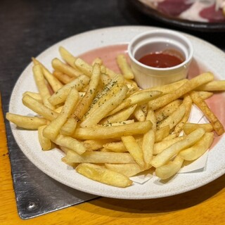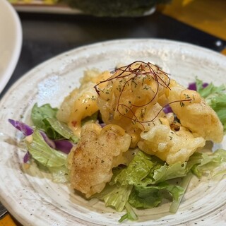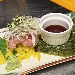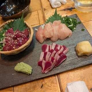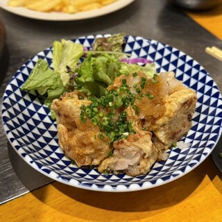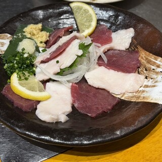 久々に梅田で飲みに行くって事で 利用させていただきました。 大阪梅田駅から徒歩1分の駅近。NU茶屋町からもすぐ近くのチロル茶屋町ビル8階のお店です。 店内は通路と個室が暖簾で仕切られています。 客層はサラリーマンやOLさん中心ですが学生さんや女子会の方々もいらっしゃる様子でした。 仲間内で仕事帰りにワイワイと楽しむには良いお店のようです^_^ お料理は九州の地元料理も色々と味わえるとの事で目移りしてしまいます。 本日いただいたのは ○福岡名物明太もつ鍋(二人前から) 1,738円 ○牛ハラミステーキ 1,496円 ○桜肉のユッケ仕立て 1,133円 ○本日の鮮魚三点盛り 1,298円 ○串焼き盛り合わせ 1,078円 ○手羽先5本 1,001円 ○カタラーナ 638円 ○スーパードライ中ジョッキ 693円 ○お通し 先ずはビールで乾杯...