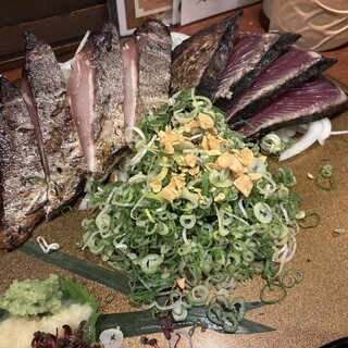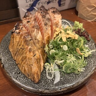 10日前に参集した昔の部下と、新たに加わった中堅所との会合。 一番遠い奴が神戸から参集する事から、4人が通行するJR尼崎駅にて参集する事にした。 目的は、、夏に実施出来なかった二泊三日のキャンプを、今秋一泊二日で敢行しようとするもの。 いい年して何をやっているかと言われそうですが、夜に焚き火を見つめながらウィスキーを傾けるのが至極の楽しみなのです。 今日は持参物の最終確認と分担者の振り分け。 そして、到着してから撤退する迄の食事内容を協議します。 その前に乾杯を。 遅れて来る1名を放っておき、時間前に参集した3人で乾杯。 生ビールは発泡酒ですが、¥500追加すると本当のビール迄飲めると案内される。 ビールの後はハイボールや梅酒を戴きますから、そのままで進めて頂く。 秀逸だった料理が「カツオとハマチの藁焼き」。 店頭に置かれていた藁を使用し、ダイナミックな炎を上げて...続きを食べログで見る