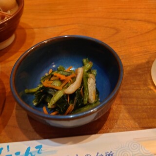 2023年4月 \3,638 岡山駅西口店は訪問したことがありますが、こちらは初めての訪問です。 土曜日の21時過ぎにうかがいました。 カウンター席に座りました。 2人分の座席を確保し、一方に荷物を置きました。 いただいたもの: ・スーパードライ生中ジョッキ ¥550 ・お通し ¥350 ・アサヒ)唐揚げ2個プレゼント ¥0 ・鯛ごま ¥880 鯛の刺身にすりごまをかけて感じで福岡で食べた胡麻サバほどの感動はなかったです。 ・ままかりの酢漬け ¥462 自宅ではなかなか食べないので注文しました。 ・テネシーハイボール ジャックダニエル ¥450 ・ホルモン焼うどん ¥946 これはなかなか美味しかったです。 岡山名物の黄ニラ玉子とじ、ホルモンうどん、ままかりの酢漬けから2品をいただきました。 お会計は合計3,638円(消費税等¥3...続きを食べログで見る