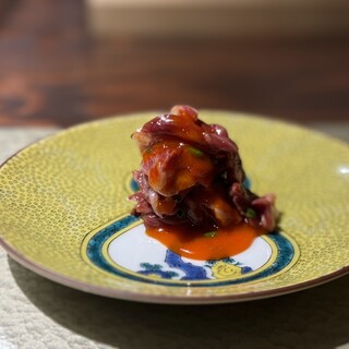 広島電鉄縮景園前電停の目の前にあるアーバンビューグランドタワー2階の「日本料理 三嵋」さん。 2004年開業、運営は株式会社三嵋【代表取締役:勝部修二氏】 料理長:濱辺敏章氏【なだ万→リーガロイヤル 日本料理なにわ副料理長→三嵋料理長】 テーブル席や個室を合わせて70席の大箱。 着物姿の女性が出迎えて下さり、格調高いですね。 お昼に訪問し「京御膳 俳風」(税込3,300円)をお願いしました。 因みにお料理は配膳してくれても解説は無し。 見て食べて感じろ!ってことかな? よって食べて気付いたまま書いてます。 お料理 ①寒鰤&炙り寒鰆 ②角煮とお野菜(人参&蕪等)の焚き合わせ ③サーモン、酢味噌載せ ④湯葉の飛子載せ ⑤芝海老のとろろ掛け ⑥青海鼠とブロッコリー、このわた掛け、クコの実載せ ⑦焼き鯖 ⑧素揚げピーマン ⑨芝海老の...続きを食べログで見る