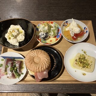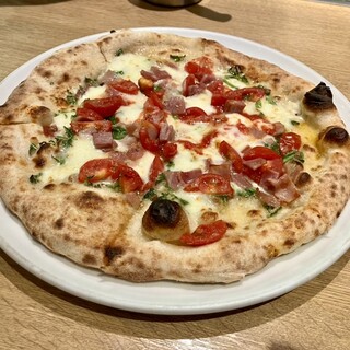 久しぶりにリピで伺いました。 いつもフィデウアを頼んでいたのですがメニューが変わっていて無くなっていました。少し残念。今回はマルゲリータを注文しました。 5~10分くらいでピザが来たのですが、サイズが大きい!直径が28センチくらいあると思います! ピザカッター全然切れないです笑 トマトソースの水分なのかオイルなのか分かりかねますが、結構見た目が水気ある感じです。生地はかなり薄いので自重で先が垂れ下がって食べづらいかも。味は普通にチーズとトマトで、チーズはもにっとしていて美味しい。 店内の冷房がきついから割と早く冷めてしまうのが玉に瑕です。 お野菜のビュッフェは変わらず美味でした。パプリカと新タマネギは生でも甘さがあり、歯ごたえも良くしゃきっとしていて、スナック感覚で食べられて良かったです。 カリフラワーのお浸しは食感も良く、形もあいまって出汁がよく絡み美味しかった。 好きだ...続きを食べログで見る