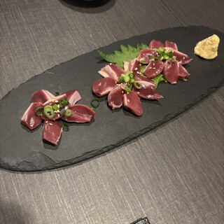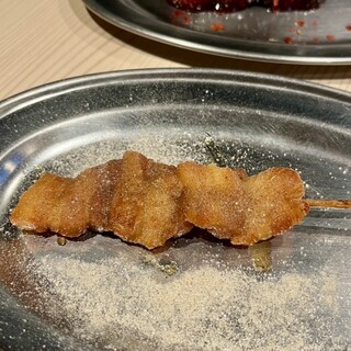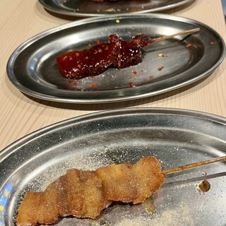 飲み会で初訪問しました。 飲み放題付きのコースを頼んでいましたが、最初に店員さんから、飲み放題にビールとハイボールを付けると各¥500ずつプラスになると言われて???でした。 料理ももずく酢に始まりサラダ・刺し盛り・串・もつ鍋など一通りきましたが、可も無くでした。 もつ鍋は、最後に雑炊にすると言うことで、ごはんと卵が来ましたが、もつ鍋の〆はチャンポンなど麺類で、雑炊での〆は初めてだったので、最後まで???でした。続きを食べログで見る