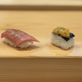 OPENしたばかりの【起承転結(博多)】へ。 前菜の「根セロリのムース」でいきなり度肝を抜かれました。なめらかな食感と香りのバランスが絶妙。 お造りはクエと熟成サワラ。旨みの引き出し方が本当に上手で、一口ごとに感動。 そして第一弾のお寿司。白身、ヤリイカ、小肌と続き、焼き茄子のすり流しはまさに絶品。 さらに未来サーモンの西京焼き、秋鮭と松茸の茶碗蒸しと、秋の味覚が見事に調和していました。 後半はマグロ3貫に鮑のリゾット仕立て、車海老、煮穴子…と至福の流れ。 最後のデザートまで一切の妥協がなく、構成・テンポ・温度感まで計算された素晴らしいコースでした。 飲み放題には生ビールはもちろん、ジンソーダや日本酒まで付いており、コスパも抜群。 職人技とおもてなし、どちらも感じられる、まさに「起承転結」という名にふさわしい一夜でした。続きを食べログで見る