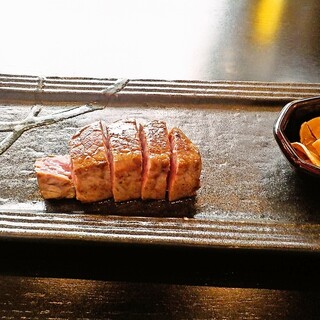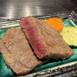 ステーキ鉄板焼きを食べる! 今までの私の常識では、カウンター形式(時にはテーブルもありますが)の向こう側にキッチンの方が焼き手になって、注文品(ほとんどがコース仕立て)を会話の合間合間に出してくれる。 食べる・飲むペースが少し我々主導ではない、時折必要以上に緊張するようなお店も数多しでした。 今回うかがったこのお店は、基本自分たちで焼く好み加減!味付け(塩・コショーなど加減)できるんです。 醬油はいろいろ好みに合わせて味や風味が違うものがありました。 コース仕立てで頂きました。 あったかいスープに見立てた、九州ならではのがめ煮○ 刺身、醬油の違いを楽しみながら○ 肉、ボリューム満点!!◎ 野菜、大きな工夫は無いが△ 〆が選べるご飯スタイル!!玉子かけご飯◎ 他追加で エビ◎ ホタテ○ 今回は6人でテーブルを囲み焼き加減や味付けなどで盛り上がりました。...続きを食べログで見る