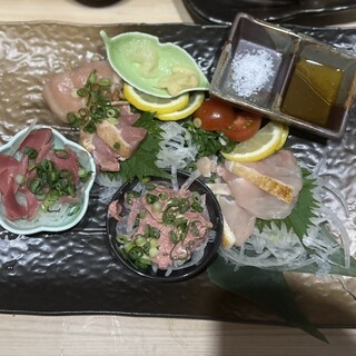 宮崎キャンプシーズン2月の金曜日にお客様との会食で利用しました。 宮崎地元の方より是非美味しいから食べてほしいという鶏鍋が有名なお店とのことで、ずいぶん前から予約させて頂きました。 8名で予約したため別館の個室にご案内いただきました。この隠れ家的な感じもGOODです♪ 店内には有名人、プロ野球選手など多くの写真が飾ってあり期待大です。 ◆注文メニュー ・名物しゃん鍋付コース@3,200円 ・刺身 ・地鶏の鉄板焼き ・手羽&チーズ春巻き ・〆の雑炊 驚くのがこの値段!!!これだけボリュームとクオリティあって安すぎませんか? お酒をアラカルトで頼みましたが、しこたま飲んで8人で3.8万円程。一人当たり単価5千円以下で全員満足でお客様にも喜んでもらえるクオリティです◎ 鶏ミンチを肉団子にしてお鍋に入れ、ポン酢のようなさっぱりしたつけだれで頂く。これ最高でした。...
