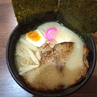 そういえば、読谷の「はちれん」に行ったことがない…ということで、野菜を買いつつ、行ってきました。「麺屋はちれん読谷本店」は読谷ファーマーズマーケットゆんた市場の隣、読谷村地域振興センターの3階にあります。 日曜のお昼時に行ったからか、老若男女のファミリー層で盛況で、約10組待ちでした。入口の券売機で食券を買ったら、お店のスタッフに渡して、引き換えに呼び出しベルをもらって待ちます。 待つこと15分くらいでしょうか。ひとりだったのでカウンターに案内されました。 今回いただいたのは… 梅つけめん(950円)+オールスターズ(300円) 梅つけめんオールスターズです。オールスターズはトッピング全部入り、という感じでしょうか。大きなチャーシューと海苔が2枚ずつ、鶏肉と玉子の親子コンビ、あとはナルト、メンマ、シソがのっています。 全粒粉入りの麺は、固まらないようにオイルで和えて...続きを食べログで見る