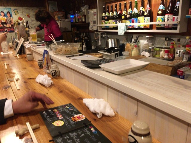 カウンターのみの居酒屋です ドリンク、調理などを行います