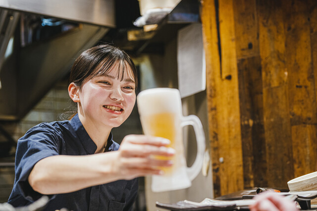【ホールスタッフ】 お店の顔として、お客様のご案内、配膳、片付け、会計などの接客業務全般をお願いします。